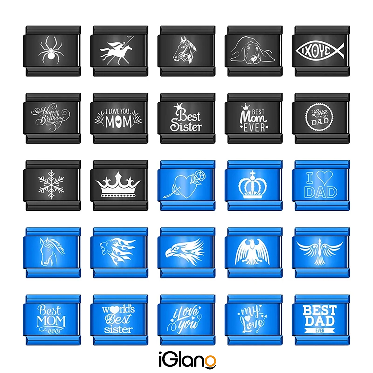 · Model: Black Blue Crown Animal Love Mom Dad Italian Links Charm